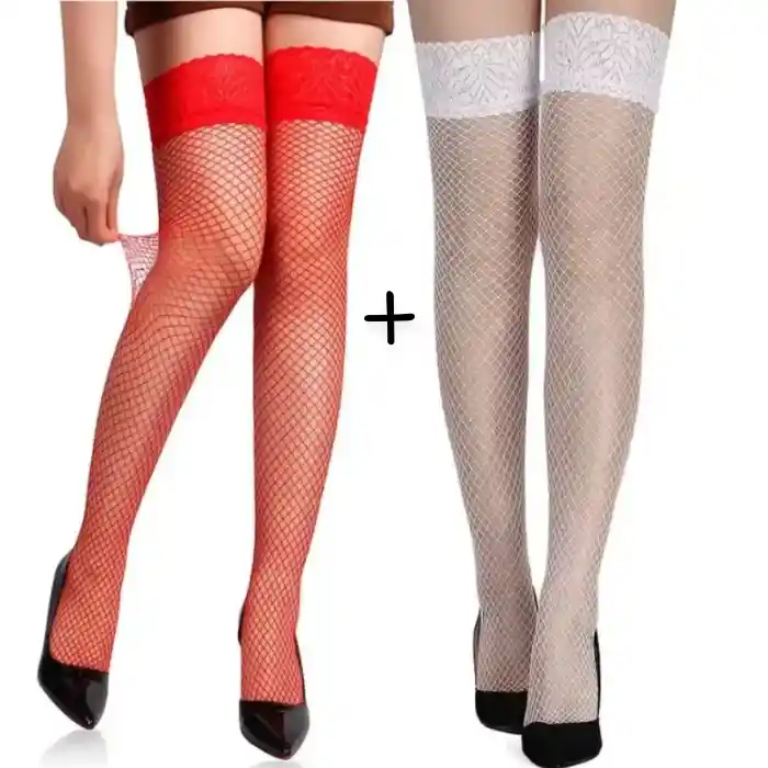 *2 Medias De Malla Sexy Roja Y Blanca Lenceria De Encaje