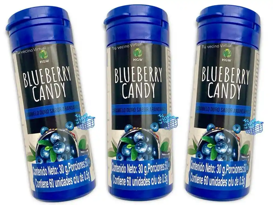 En tu vecino virtual también encontraras : Anyeluz, syam cosmetic, piel de oro, Kaba, class gold, lampiña, Te verde de matcha Benefit, te plus, te latte, te negro, exfoliante, aceite de coco, pomada alfa, colageno hidrolizado,vinipel osmótico, Bioaqua Acne, Mascarillas,tónico, Trendy, la pocion, HGW y muchos mas ————————————————————————————————————————————————— -Blueberry Candy Hgw Arandanos Frasco con 60 dulces. Beneficios: Los Arándanos: El alto contenido antioxidante de los arándanos ayuda a regular la respuesta inmune, promueve la actividad antiinflamatoria y fortalece las membranas celulares, entre otras funciones importantes. La Antocianinas: Es uno de los principales bioactivos contenidos en los Arándanos y en la actualidad existen diversos estudios que presentan evidencia científica que los extractos ricos en antocianinas pueden mejorar la agudeza visual. Modo de uso: Retire el precinto y levante la tapa del frasco, tome la porción requerida (1 o más unidades) y disfrute de su agradable sabor.
