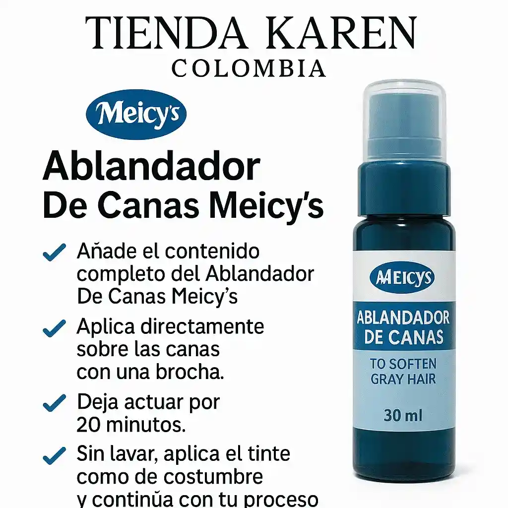 🧴✨ Ablandador de Canas Meicys ✨🧴 Potencia tu tinte y logra una cobertura total de canas con resultados profesionales desde casa 💁♀️🎨 🌟 Beneficios: ✔️ Abre la fibra capilar, permitiendo una mayor penetración del color ✔️ Resultados más uniformes y duraderos ✔️ Facilita el cubrimiento completo de las canas, incluso las más resistentes ✔️ En bases naturales, aclara hasta 7 tonos ☀️ ✔️ De acción rápida – ¡resultados visibles en minutos! 🔹 Modo de uso: Añade el contenido completo del Ablandador de Canas Meicys y mezcla bien. Aplica directamente sobre las canas con una brocha. Deja actuar por 20 minutos. Sin lavar, aplica el tinte como de costumbre y continúa con tu proceso habitual de coloración.