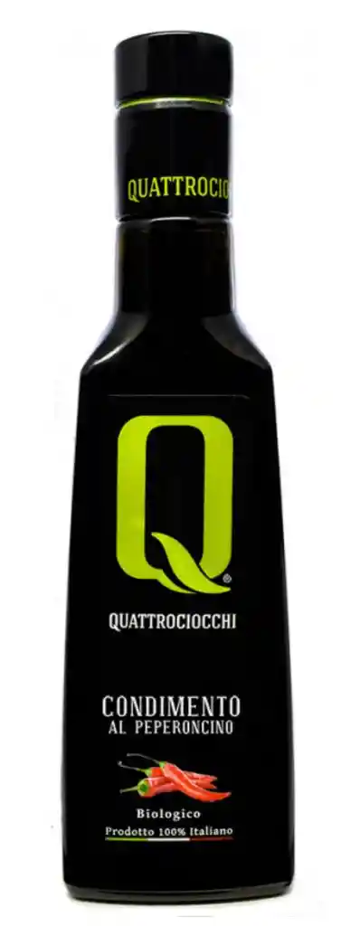 Aceite de oliva extra virgen infusionado con peperoncino que ofrece una mezcla perfecta entre la suavidad del aceite de oliva y el picante característico del chile italiano. Ideal para pizzas gourmet, pastas, carnes, mariscos y verduras, aportando un toque intenso y auténtico de la cocina mediterránea.