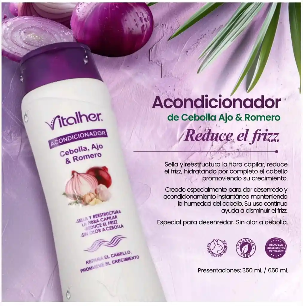 Acondicionador con cebolla, ajo y romero - sella y restructura - VITALHER- 350 ml.