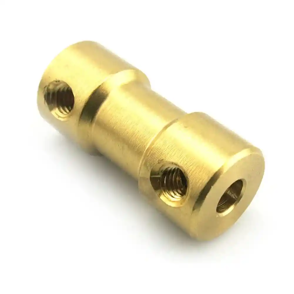 Un acoplamiento de latón es un orificio pasante que conecta dos ejes ópticos de diferentes diámetros, ya sea a un motor y un eje óptico, o a ejes de diferentes diámetros. Puede utilizarse como tornillo y como dispositivo de transmisión entre el eje de transmisión y el motor de un modelo de barco a control remoto. Los orificios para tornillos laterales son uniformemente M3. Cada acoplamiento está equipado con cuatro tornillos. Diametros : 3.175mm x 5mm Especificaciones: Material: latón Color: amarillo Tamaño: diámetro de ambos extremos de la sección transversal: 9 mm/0,35 pulgadas; diámetro intermedio de la sección transversal: 7 mm/0,28 pulgadas; longitud total: aprox. 20 mm/0,79 pulgadas LA COMPRA INCLUYE: 1x ACOPLE RIGIDO MANDRIL 3.175mm A 5mm
