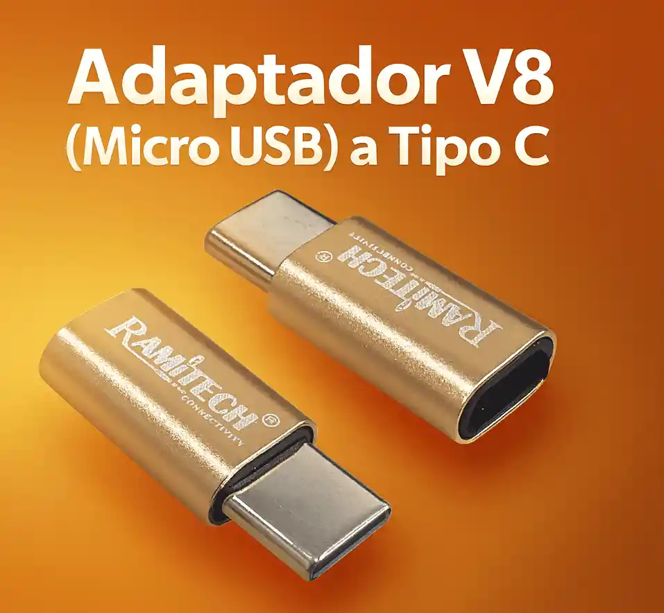 🔌 Adaptador de Conexión V8 (Micro USB) a Tipo C ⚡ Convierte fácilmente tus cables y cargadores con este Adaptador de Micro USB (V8) a Tipo C, práctico y compacto, ideal para seguir utilizando tus accesorios sin necesidad de comprar nuevos. Características principales: 🔄 Compatibilidad: permite conectar un cable o cargador con conector Micro USB (V8) a dispositivos con puerto USB Tipo C. ⚡ Carga y transferencia de datos: soporta carga estándar y sincronización de datos entre dispositivos. 📏 Diseño compacto y ligero: fácil de llevar en el bolsillo, bolso o estuche. 🛡️ Material resistente: fabricado para un uso duradero y seguro. 🔌 Plug & Play: no requiere instalación, solo conectar y usar. Usos recomendados: 🔋 Reutilizar tus cargadores Micro USB en teléfonos o dispositivos con entrada Tipo C. 💻 Conectar accesorios y cables antiguos a equipos más modernos. 🏠 Ideal para el hogar, la oficina o llevar de viaje gracias a su tamaño mini. ⚠️ Nota importante: Este adaptador es para carga estándar y transferencia básica de datos. No está diseñado para carga rápida de alta potencia ni para transmisión de video/audio.