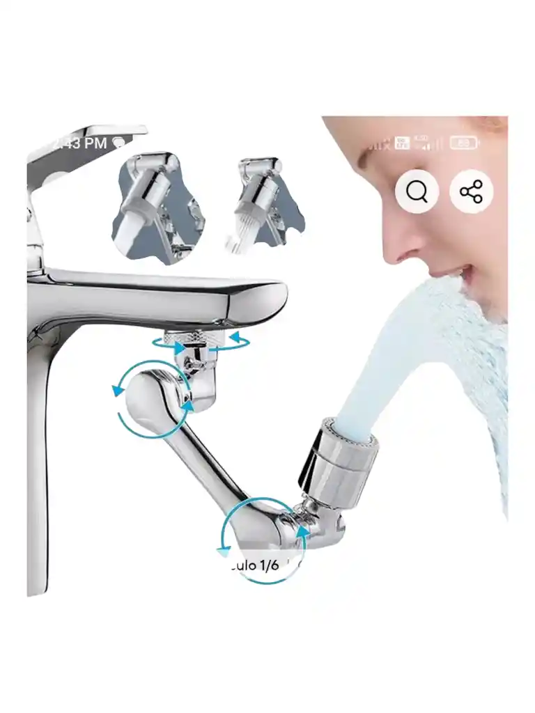 Adaptador extensible y giratorio para grifo Convierte tu grifo en una herramienta mucho más práctica. Este adaptador metálico con brazo articulado y cabezal giratorio 360° permite dirigir el chorro de agua a cualquier ángulo, facilitando el lavado de platos, frutas, ollas o el fregadero completo sin salpicaduras. Beneficios: • Rotación 360° para mayor alcance y comodidad • Ahorro de agua gracias a su salida tipo aireador • Fácil instalación, se adapta a la mayoría de grifos • Material metálico resistente y duradero • Ideal para cocina o lavamanos Más control, menos esfuerzo y limpieza más rápida en tu hogar.