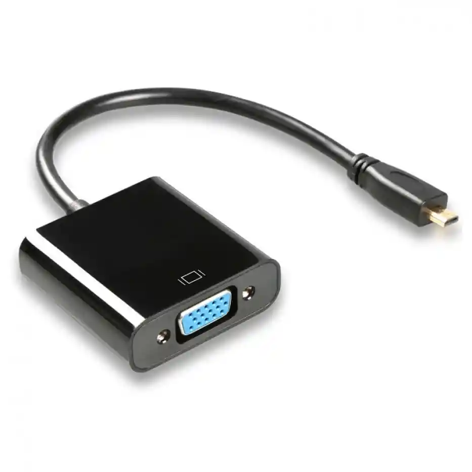 Adaptador Micro HDMI a VGA El adaptador digital permite convertir la señal de video Micro HDMI a VGA, es ideal para conectar su dispositivo a una pantalla, proyector o cualquier terminal de video con entrada VGA