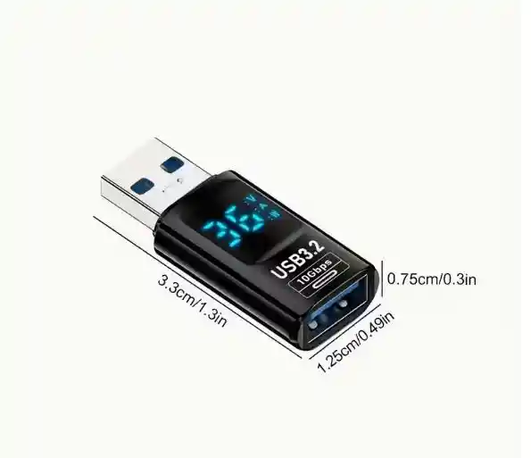 Adaptador USB 3.2 (USB-C macho a hembra) con pantalla de velocidad en tiempo real - USB 3.2 Gen 2, carcasa transparente, carga rápida y transferencia de datos, compatible con PC, portátil, smartphone, tablet - compatible con dispositivos USB 3.0/2.0/1.1, adaptador multidispositivo