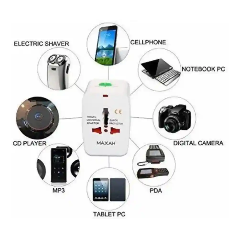 CONVERTIDOR: VIAJERO. CAPACIDAD: 6A-125VOLTIOS, 10A -250V. Descripción: Enchufe adaptador cargador de viaje Universal para todo el mundo Convierte la toma de corriente al viajar a otros países Adaptador de enchufe de corriente alterna de viaje internacional Universal /AU/UK/US/EU Enchufe de viaje internacional para EE. UU.-Reino Unido-Australia-Europa Todo en uno puede conectar tu dispositivo eléctrico en todo el mundo Compacto y cómodo diseño Protección contra sobretensiones Obturador de seguridad Especificaciones: Corriente nominal: 3A-10 (A) Voltaje nominal: 110-250 (V) Material de la carcasa: ABS respetuoso con el medio ambiente retardante dellama Material: Aluminio Tamaño: 7,3*5,0*3,9 cm Peso neto: 77g Color: blanco