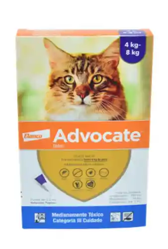 Tripack Advocate® 3 pipetas para 3 meses de protección. Advocate de Bayer es un antiparasitario interno y externo para Gatos de uso externo. Su pipeta debe aplicarse una vez por mes para mantener a tu gato con mayor protección. Está formulado para actuar en contra de parasitos externos e internos. 0.8 ml.