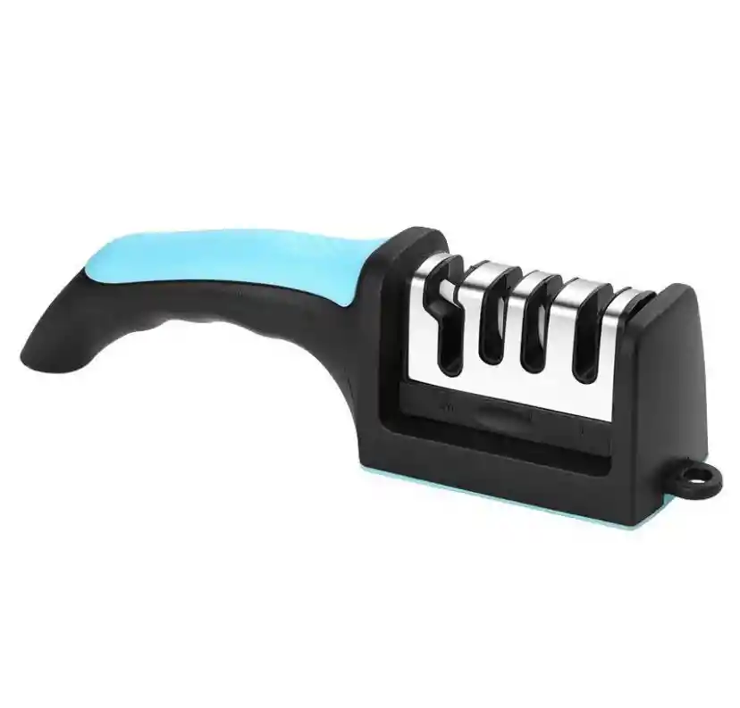Afilador de Cuchillos Profesional 3 Etapas ✨ ¡Filos Como Nuevos al Instante! ¡Recupera el filo perdido de tus cuchillos en segundos! Este afilador manual de 3 etapas es la herramienta esencial que necesitas para mantener tus cuchillos de cocina en condiciones profesionales. Su diseño seguro y ergonómico lo hace fácil de usar, ¡incluso para principiantes! 🛠️ Triple Acción de Afilado: Este sistema integral te permite restaurar, afilar y pulir tus cuchillos con tres ranuras especializadas: Afilador Grueso (Tungsteno): Para cuchillos sin filo o dañados. Realiza el trabajo pesado de restauración. Afilado Diario (Cerámica Media): Para el mantenimiento y afilado cotidiano. Desbastado (Cerámica Fina): Para pulir el filo, eliminando rebabas y dejándolo extremadamente fino. Seguridad y Durabilidad: Mango en ABS: Agarre ergonómico y seguro para evitar deslizamientos. Cubierta en Acero Inoxidable: Estructura robusta y resistente.