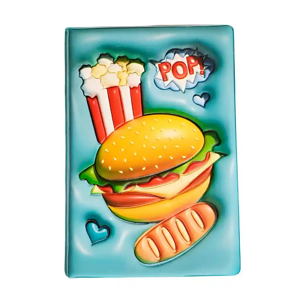 Hermosa libreta de notas con diseño de comida rápida, ideal para quienes disfrutan de un estilo divertido y original; cuenta con tapas resistentes decoradas con ilustraciones de hamburguesas, papas fritas y refrescos, mientras que sus páginas internas con líneas y detalles gráficos hacen más agradable la escritura, perfecta para tomar apuntes, anotar ideas o usar como diario personal, combinando practicidad con un diseño llamativo y coleccionable. Ficha Técnica: Dimensiones: 19 cm x 13 cm x 2 cm Material: Plástico / Hojas Edad Recomendada: + 3 años Referencia: AF-8-11 Certificado de conformidad: E5-0359-2021 ** _Para defectos de fábrica o retractos: \_Por favor revise el producto apenas lo reciba y antes de usarlo. No aplican ley de retracto o defectos de fábrica luego de usar el producto. Se manejan máximo 5 días para reportar defectos de fábrica (por ejemplo, producto funciona mal, piezas faltantes, rotas, etc). Para hacer efectiva la devolución el producto debe devolverse con el empaque original, el cual debe estar en buen estado, incluir todos los documentos y las partes completas y sin daños.