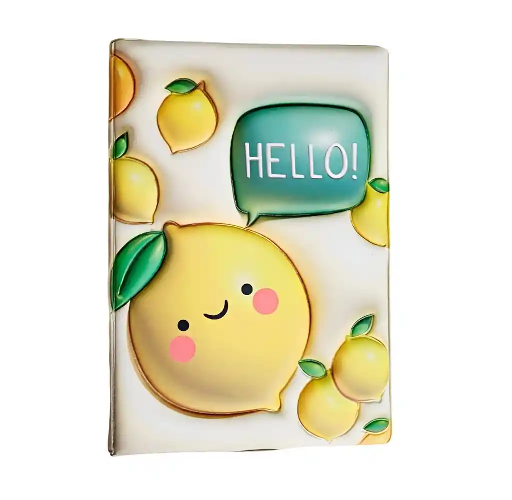 Hermosa libreta de notas con diseño de frutas, ideal para quienes disfrutan de un estilo fresco y colorido; cuenta con tapas resistentes decoradas con ilustraciones de diferentes frutas y páginas internas con líneas y detalles gráficos que hacen más agradable la escritura, perfecta para tomar apuntes, anotar ideas o usar como diario personal, combinando practicidad con un diseño divertido y coleccionable. Ficha Técnica: Dimensiones: 19 cm x 13 cm x 2 cm Material: Plástico / Hojas Edad Recomendada: + 3 años Referencia: AF-8-7 Certificado de conformidad: E5-0359-2021 ** _Para defectos de fábrica o retractos: \_Por favor revise el producto apenas lo reciba y antes de usarlo. No aplican ley de retracto o defectos de fábrica luego de usar el producto. Se manejan máximo 5 días para reportar defectos de fábrica (por ejemplo, producto funciona mal, piezas faltantes, rotas, etc). Para hacer efectiva la devolución el producto debe devolverse con el empaque original, el cual debe estar en buen estado, incluir todos los documentos y las partes completas y sin daños.