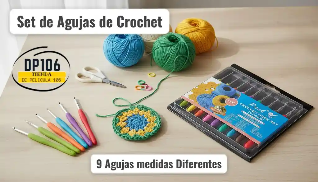 set de 9 agujas para tejer en crochet medidas: