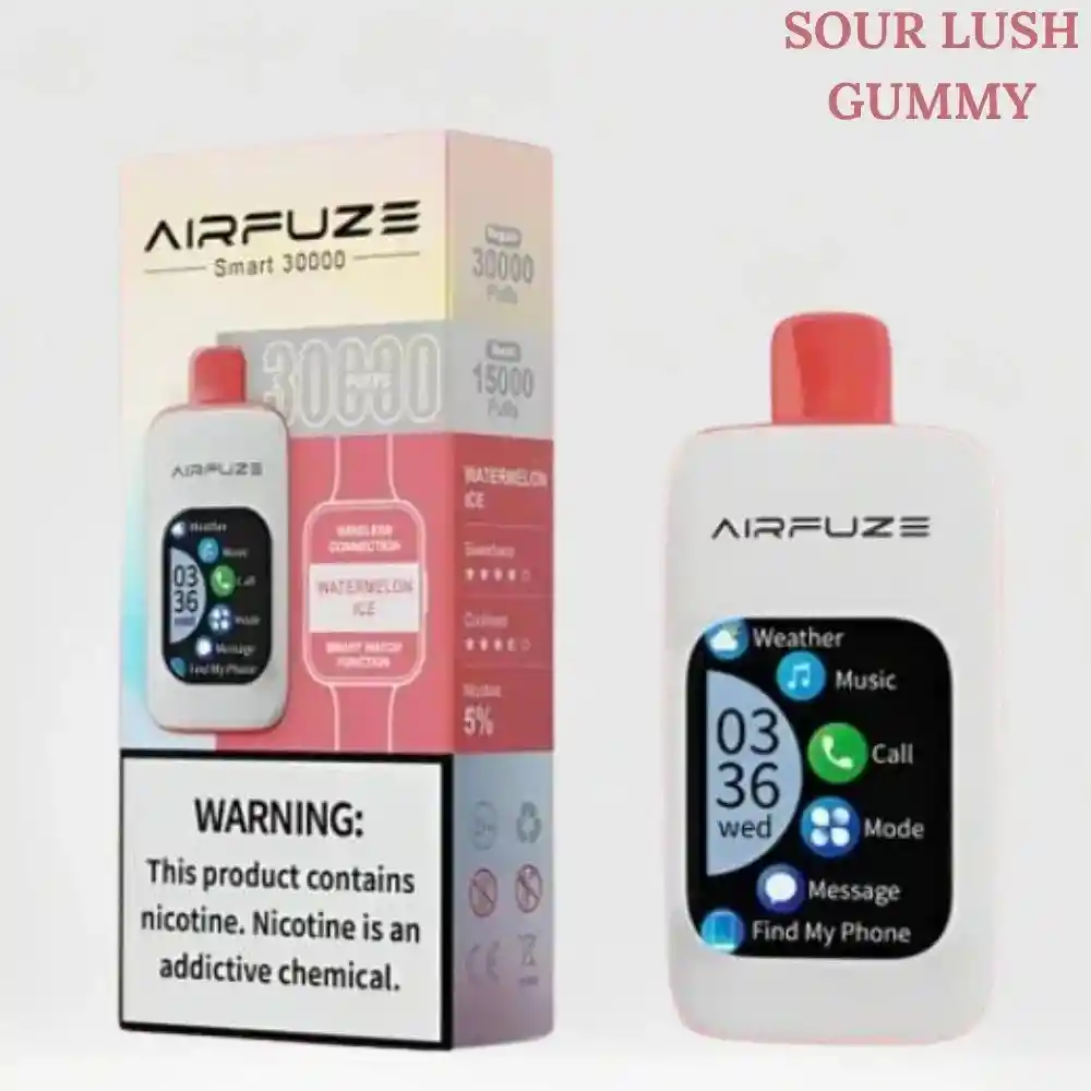 El Airfuze Smart 30k es un vape desechable de alta gama de 30,000 Puffs. Con una pantalla táctil y conexión Bluetooth, permite elegir entre 3 niveles de potencia para una vapeo a medida. Recargable por USB-C, ofrece funciones conectadas como reproducir música o hacer llamadas.