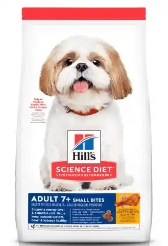 El alimento seco para perros Hill's Science Diet Adult 7+ está indicado para perros de 7 años o más de razas pequeñas. Sin colores, sabores o conservantes artificiales, con inclusión de antioxidantes para favorecer un sistema inmunológico fuerte, además de una mezcla exclusiva de ácidos grasos omega-6 y vitamina E para un pelaje brillante