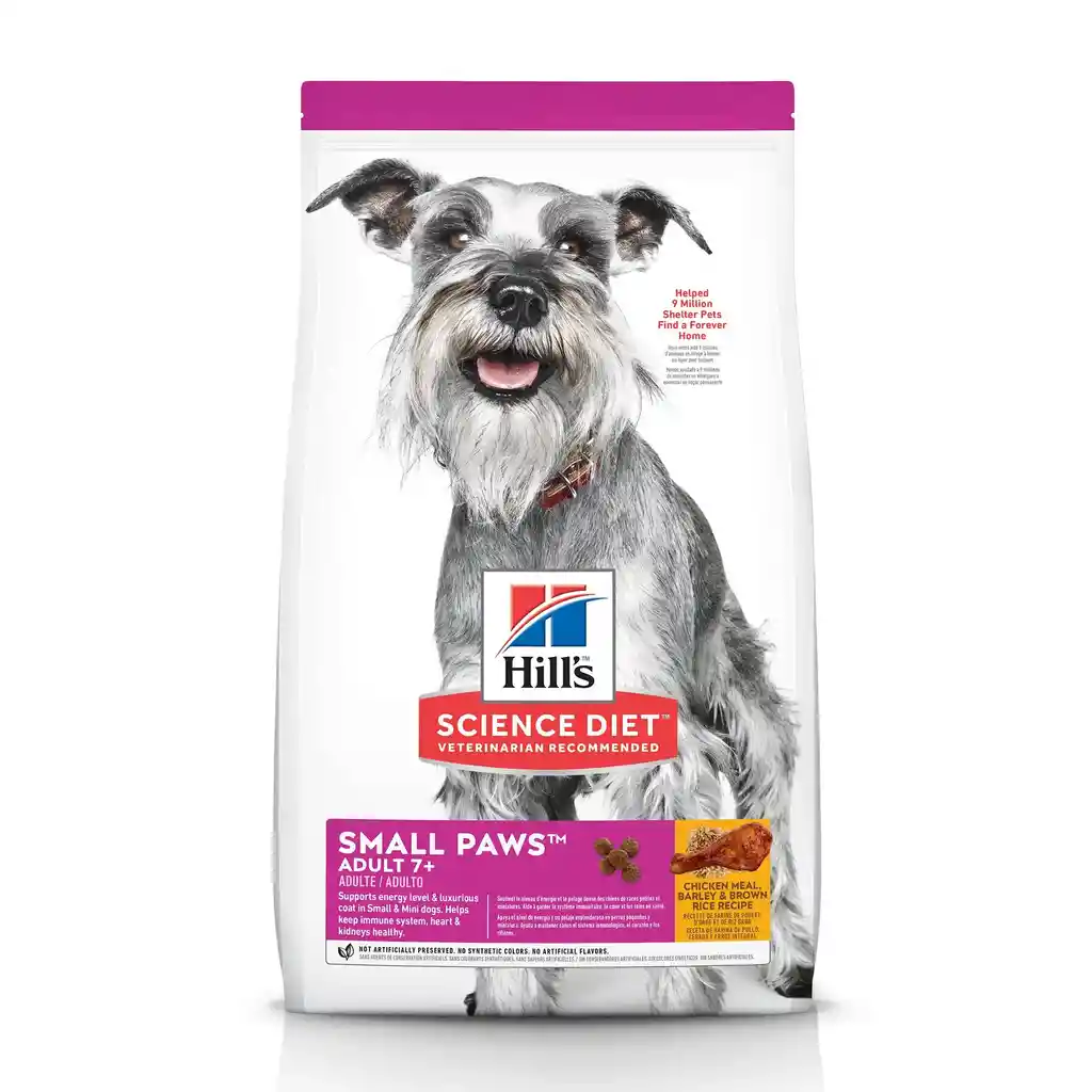 El concentrado para perros senior o adultos mayores Science Diet Small and Toy Breeds, es un concentrado ideal para proporcionar una sana alimentación y los nutrientes necesarios durante esta etapa. Su fórmula especialmente diseñada está enfocada en aumentar el nivel de energía y vitalidad en perros senior, mediante la combinación óptima de nutrientes. Contiene ingredientes de fácil digestión y naturales, pues están libres de saborizantes, conservantes y colorantes artificiales. Además, gracias a la mezcla de antioxidantes y vitaminas C y E ayudará al fortalecimiento del sistema inmunológico. Este concentrado tiene un rico sabor a pollo con croquetas más pequeñas, ideales para los perros de razas miniatura y es un alimento ideal para contribuir a una vida más saludable y a la prolongación del tiempo de vida o longevidad.