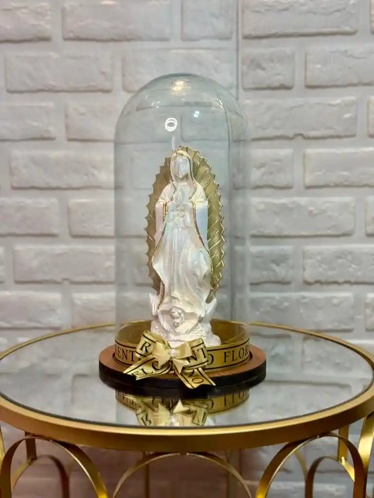 Un detalle lleno de fe y significado espiritual. DECRIPCIÓN Esta delicada figura de la Virgen de Guadalupe se presenta protegida en una capsula de cristal, ideal para transmitir paz, esperanza y devoción. INCLUYE - Tarjeta personalizada sin costo adicional.