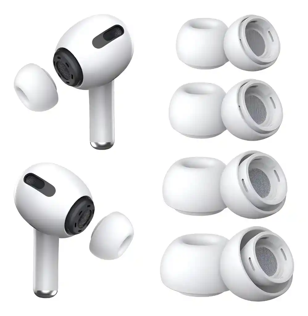 Almohadillas de repuesto para Airpod Pro 1era y 2da Generación. Modelos compatibles: Airpods Pro 1era Gen Modelo: A2084, A2083 Airpods Pro 2da Gen modelo: A2931, A2699, A2698 Paquete trae 4 pares respectivos con las tallas: XS,S,M,L Material Silicona ultra-comodas. Tienen dos agujeros de reducción de ruido en el lateral. Tiene rejilla de protección contra el polvo incorporada.