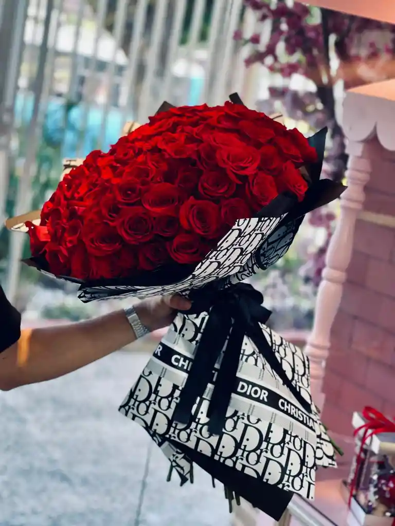 Ramo x100 rosas, mas traje elegante en papel coreano
