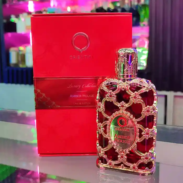 Perfume "AMBER ROUGE ORIENTICA PREMIUM" 100% garantizado. Cada perfume viene con el empaque y caja como se muestra en la foto. 1.1 Amber Rouge de Orientica Premium es una fragancia de la familia olfativa Amaderada Especiada para Hombres y Mujeres. Las Notas de Salida son azafrán y jazmín las Notas de Corazón son Amberwood y ámbar gris las Notas de Fondo son cedro y resina de abeto.