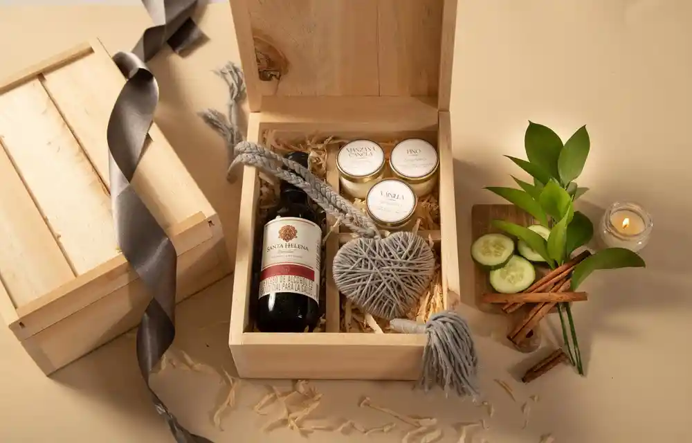 Piba de vino (187 ml), 3 mini velas aromáticas (Pepino que simboliza paz, Vainilla fresca que simboliza alegría, Manzana canela que simboliza prosperidad y Pino que simboliza gratitud y corazón bordado artesanal para decoración