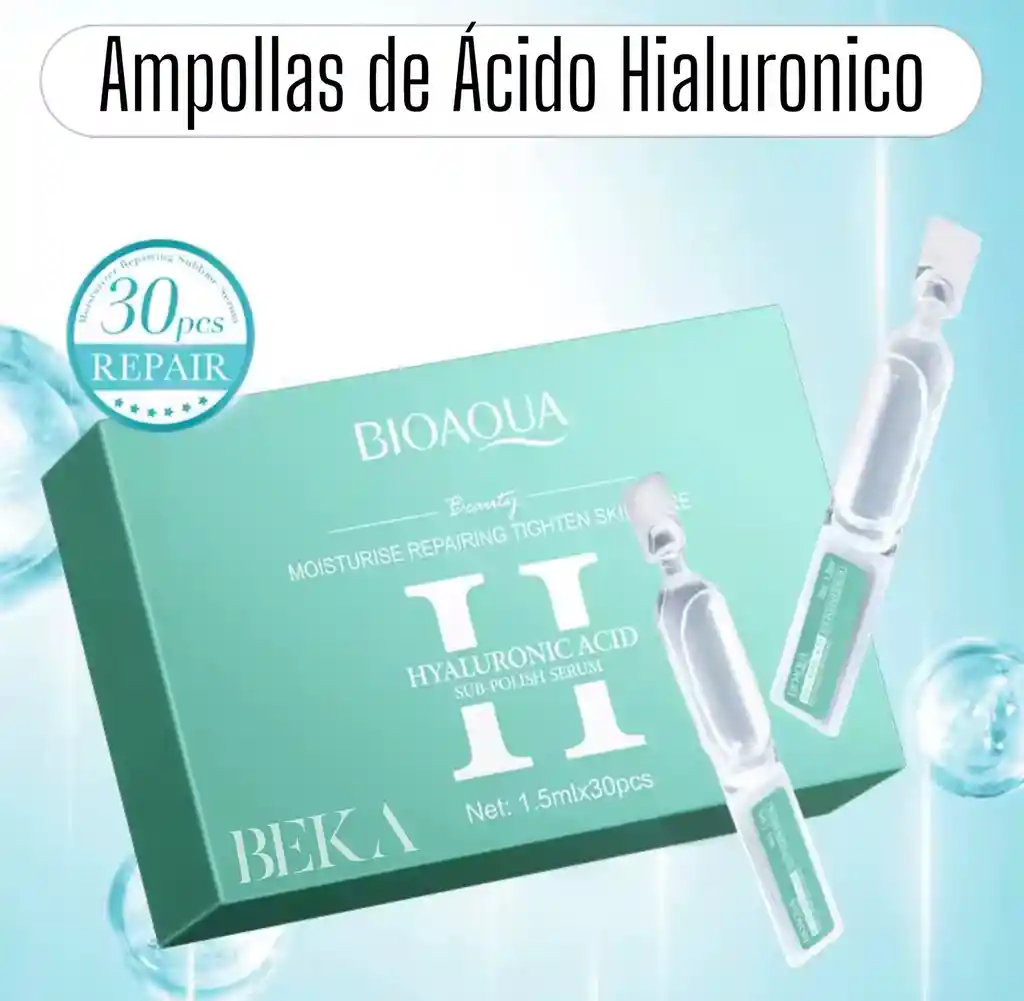 Tratamiento intensivo hidratante y reparador formulado con ácido hialurónico, ideal para mejorar la hidratación profunda, suavizar la piel, aportar elasticidad y ayudar a reducir la apariencia de líneas finas y piel opaca. Su presentación en ampollas permite una dosis precisa y una mejor absorción de los activos. Puede utilizarse en rostro, cuello y escote, especialmente en piel deshidratada, cansada o con falta de firmeza. Modo de uso: aplicar una ampolla sobre la piel limpia y masajear suavemente hasta su total absorción. Apto para uso manual y también para tratamientos profesionales con microneedling, dermapen y cartuchos de dermapen, ayudando a potenciar los resultados del procedimiento. Apto para todo tipo de piel. Ideal para rutinas diarias y tratamientos estéticos. Presentación: caja x 30 ampollas