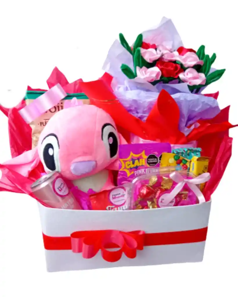 Ancheta celebración con peluche flores eternas y comestibles de tamaño grande