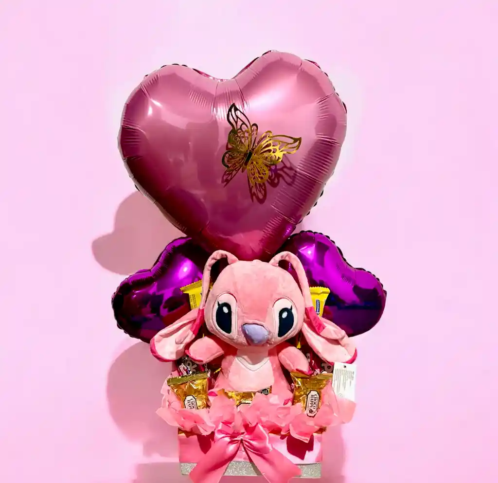 Ancheta De Stitch Rosada Con Dulces(regalo Para Mujer