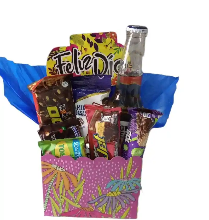 CERVEZA CORONA, CHOCOLATINA JUMBO MANI GRANDE, CHOCOLATINA GOL, MANI CON PASAS, GALLETAS TOSH,CHOCODISK, BANDEJA DE BARQUILOS PIAZZA, CAJA , PIN MENSAJE, DECORACION Y EMPAQUE