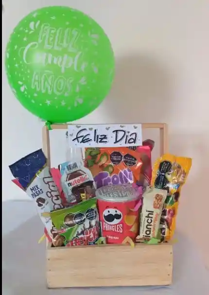 Ancheta Grande Toda Ocacion con Globo , Pringles , MyM y dulces de la imagen