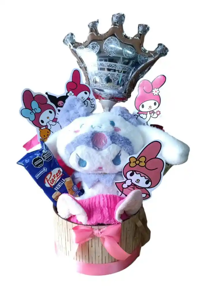 Contiene, dulces variados, ventilador portátil con sacapuntas, decoración, caja madera y empaque
