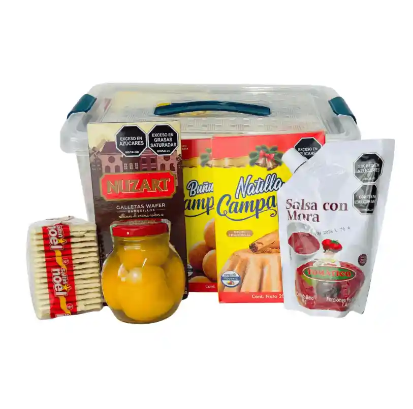 “Lluvia de Luz” es una ancheta navideña ideal para sorprender con un detalle tradicional, completo y lleno de sabor incluye natilla, buñuelos listos para preparar, mermelada, duraznos en almíbar 🍑, galletas de soda y barquillos crujientes, todo presentado en una caja organizadora plástica con moño que realza la presentación y puede reutilizarse fácilmente. Es una opción perfecta para colaboradores, clientes y familias que desean un regalo navideño clásico, práctico y representativo de la temporada decembrina. Te podemos obsequiar una tarjeta si nos envías el mensaje para que acompañes tu detalle.