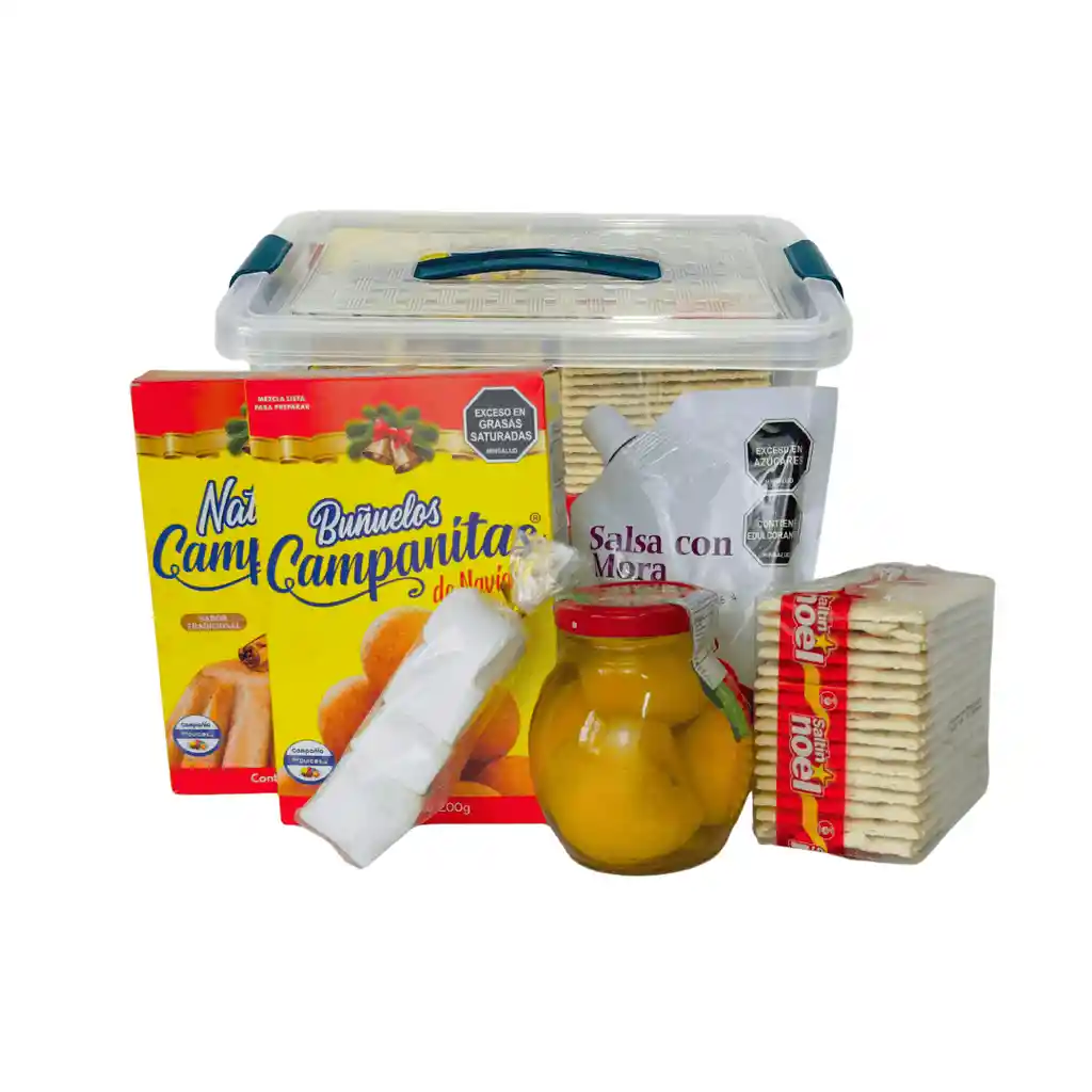 “Dulce Estrella” es una ancheta navideña tradicional perfecta para sorprender con un detalle clásico, práctico y lleno de sabor; incluye natilla, buñuelos listos para preparar, mermelada, duraznos en almíbar 🍑, galletas de soda y masmelos suaves, todo presentado en una caja organizadora plástica con moño que realza la presentación y puede reutilizarse fácilmente. Es una opción ideal para empresas, colaboradores, clientes o familias que desean un regalo navideño sencillo, completo y representativo de la temporada. Te podemos obsequiar una tarjeta si nos envías el mensaje para que acompañes tu detalle.