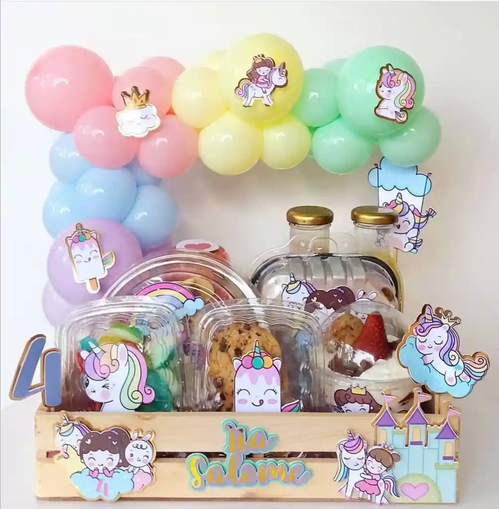 Ancheta personalizada, puedes escoger el personaje o temática. Comunicate con nosotros al chat que encontrarás al solicitar el pedido. CONTENIDO: Dos bebidas Postre Fruta picada Bonyurt o parfait Sanduche o mini empanadas de queso o carne Terjeta personalizada