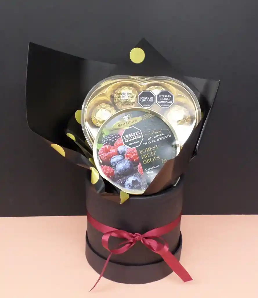 Caja De Regalo Incluye 1 Caja De Chocolates Ferrero En Forma De Corazón, 1 Caja De Dulces Importados Simpkins Y 1 Caja Decorativa En Cartón Piedra Personaliza el mensaje de la tarjeta en los comentarios o en el chat de la Tienda La foto es una imagen de referencia, algunos productos pueden variar según la disponibilidad.