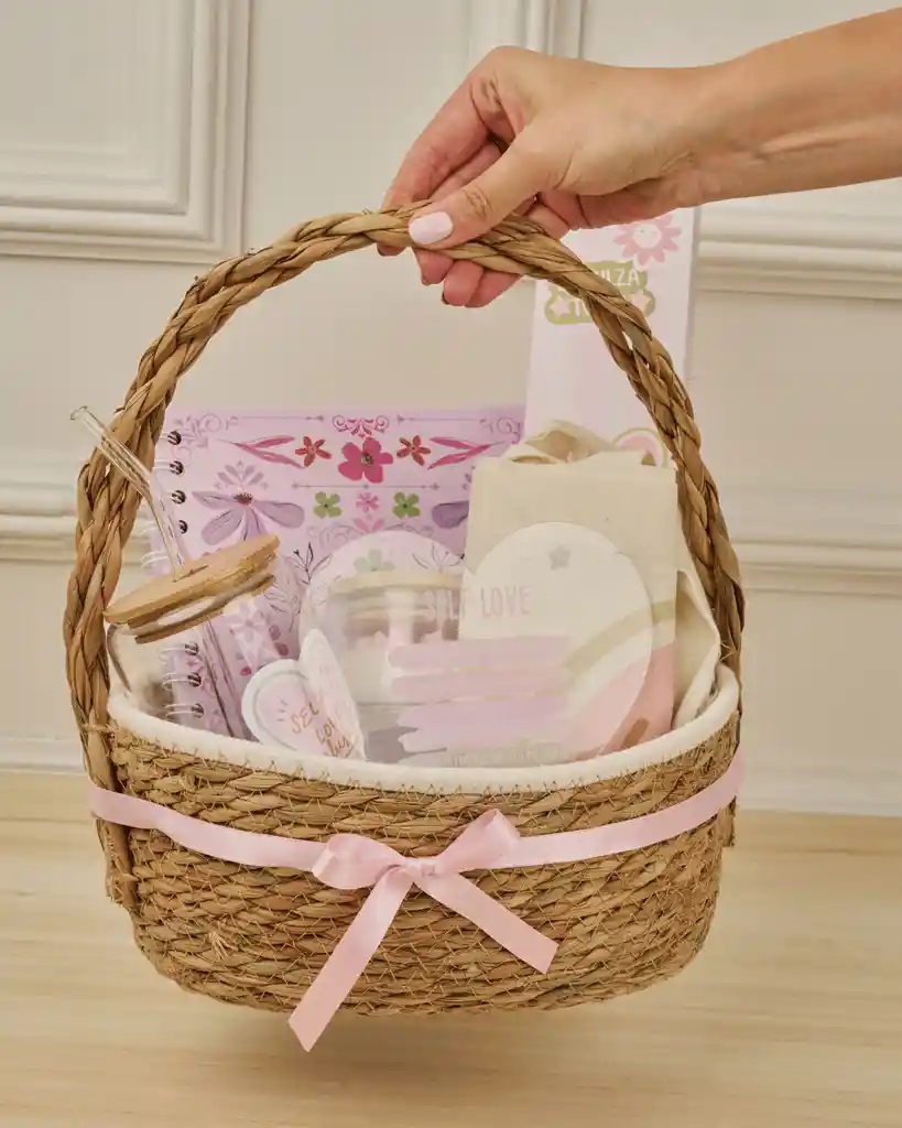 Cesta mujer suprema - Día de la mujer Nuestra versión más especial y sofisticada de la colección, creada para sorprender con detalles que permanecen en el tiempo. Presentada en una hermosa canasta de mimbre decorada con cinta, reutilizable y perfecta para conservar y usar posteriormente como elemento decorativo u organizador en casa. Incluye: Tote bag con estampado exclusivo “Self Love”. Agenda con frase inspiradora de amor propio, ideal para escribir metas, sueños y pensamientos importantes. Vela decorativa con tapa de bambú, fragancia a sandía. Vaso pitillo de vidrio con tapa de bambú, decorado con frases de amor propio. Caja decorativa con cuatro alfajores artesanales y flor incluida en su interior. Corazón acrílico decorativo con base, perfecto para colocar sobre una mesa o escritorio como recordatorio diario de amor propio. Tarjeta especial del Día de la Mujer. Una ancheta elegante, memorable y diseñada para acompañar e inspirar cada día.