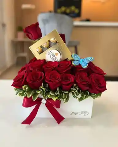 Anchetas, desayunos sorpresa y detalles para cumpleaños, aniversario, amor y amistad, Día de la Madre, Mujer, Niño, Navidad y San Valentín. Incluye flores, chocolates, peluches y fresas con chocolate. Contenido: - Caja Carton - Rosas - Chocolates - Tarjeta personalizada Adiciones: - Globo burbuja marcado 15,000 - Arreglo floral 50.000 - Peluches desde 20.000