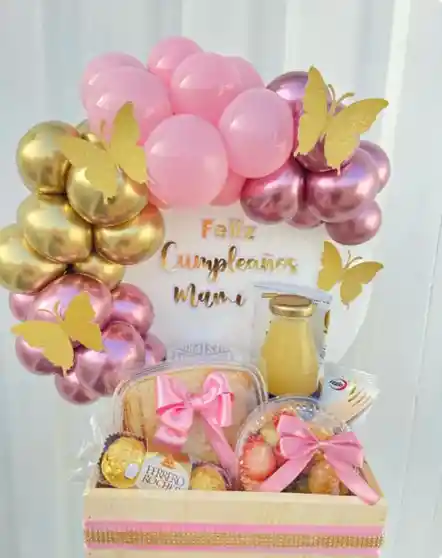 Anchetas, desayunos sorpresa y detalles para cumpleaños, aniversario, amor y amistad, Día de la Madre, Mujer, Niño, Navidad y San Valentín. Incluye flores, chocolates, peluches y fresas con chocolate. Contenido: - Caja Madera - Frutas - Sandwinch - Jugo Hatsu - Chocolates - Papas pringles - Tarjeta personalizada Adiciones: - Globo burbuja marcado 15,000 - Arreglo floral 50.000 - Peluches desde 20.000