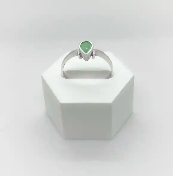 Anillo Plata 925 talla 7.5 con Esmeralda Lagrima en bisel de 0.30ct