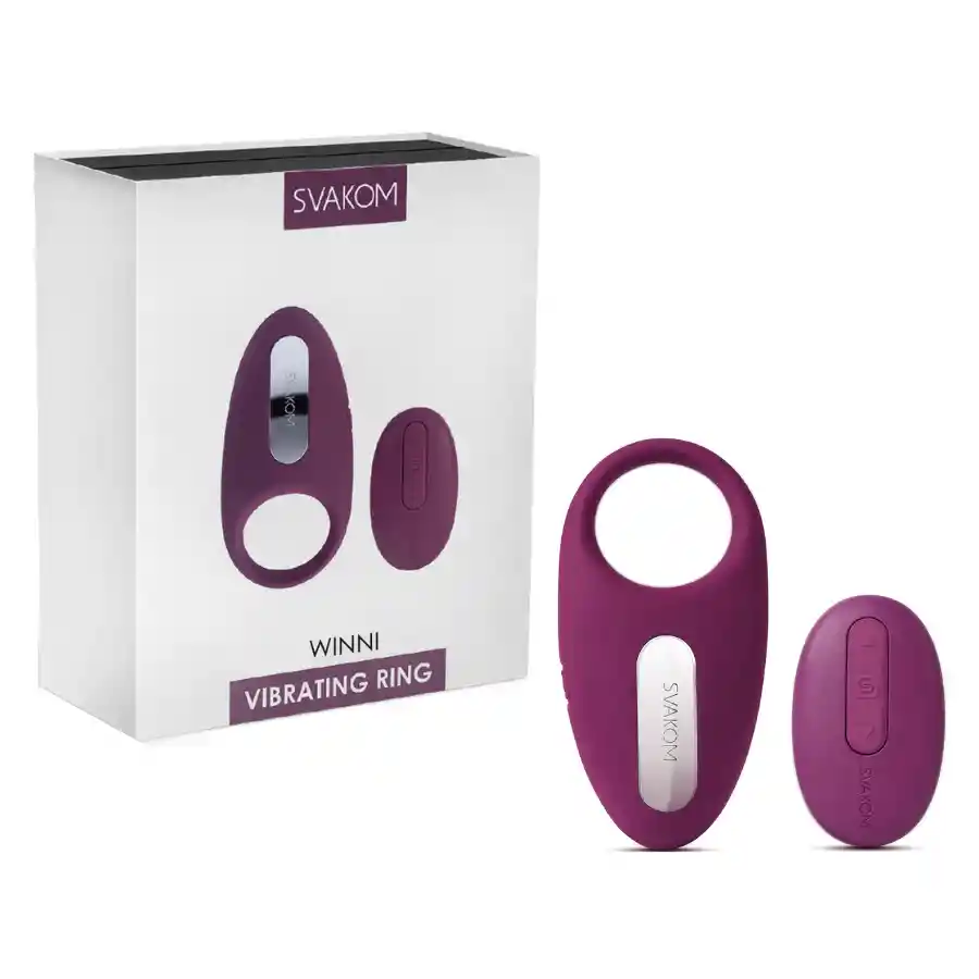 ¡El regalo perfecto para un hombre! Anillo Vibrador Para El Pene Winni Svakom Winni es un anillo vibrador que tiene la capacidad de mejorar el sexo en pareja, puesto que puede prolongar la resistencia del hombre y el placer de la mujer al mismo tiempo. Se recomienda usarlo a su vez como estimulador de clítoris. Puede usarse en remoto, para experimentar una interacción mucho más explosiva con su pareja, gracias a este control, se podrá ajustar los modos y la intensidad a gusto. Además, incluye una vibración Winni, que es extra potente para llevarlos al clímax en contados segundos. Disfruta de experiencias diferentes y agrega un poco de picardía a tu vida. Características: • Contenido: Anillo Vibrador + Bolsa protectora + Cable de carga + Guia de uso + Folleto de seguridad • Anillo y vibrador • Control remoto • 5 modos de vibración • 5 niveles de intensidad • Material: Silicona grado médico + ABS • Medidas: 9 Cm x 4.6 Cm x 3 Cm • Batería recargable por medio de cable USB tipo plug (Adaptador de corriente no incluido) • Tiempo de carga: 1 hora • Tiempo de uso: 1 hora aproximado • Resistencia al agua: IPX4: Protege de salpicaduras de agua, sin importar la dirección. No es sumergible. • Control remoto inteligente funcional hasta 10 m. de distancia • Garantía: 1 año PRECAUCIONES: No usar por más de 30 minutos, ni dormir con él puesto. Si siente dolor o incomodidad, quitarlo de inmediato. Descúbrenos y descubre el placer y el bienestar No lo pienses y disfruta de grandes momentos. Limpieza: Antes de usar el juguete por primera vez, y después de cada uso, este debe ser limpiado para reducir el riesgo de infecciones, mantener la higiene adecuada evitara el deterioro rápido del juguete. Cuidado: Para una experiencia más placentera, es ideal que el uso de este juguete sea con lubricantes a base de agua. No se deben usar lubricantes de silicona con juguetes de silicona. Podrían sufrir daños irreversibles. Confidencialidad: Tu producto llega en empaque 100% discreto, cuidamos tu privacidad.