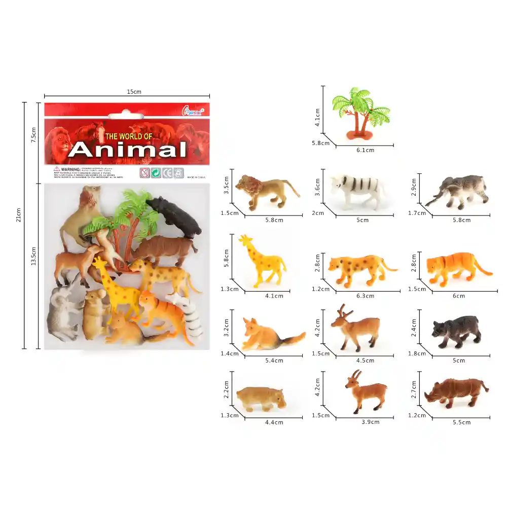 NOMBRE: ANIMALES SALVAJES PEQUEÑOS X 12 BOLSA DESCRIPCIÓN: Increíble set de Animales Salvajes pequeños ideales para que los niños dejen volar su imaginación, jugando y recreando entretenidas y divertidas aventuras selváticas. Jugar con Animales alimenta la imaginación en los niños, mejorando la atención y el desarrollo de habilidades más complejas de procesamiento de información mientras adquieren conocimientos sobre una temática específica. Incluye 12 Animales de la selva. - Dimensiones del producto empacado: 12X10X2 centímetros - Disponibilidad permanente - Despachos a nivel nacional - Tiempo de entrega aproximado 3 a 4 días hábiles contados a partir del día hábil siguiente al pedido. La plataforma te dará un tiempo de entrega mas preciso al momento de concretar la compra. Estamos atentos a resolver cualquier inquietud que tengas después de revisar las fotos y descripción del producto. JUGUETELANDIA más de 30 años ofreciendo diversión. Fabricante: AO SI NI TOYS FACTORY Importador: Plasticos Asociados SA Recomendaciones: Requiere de la supervisión directa de un adulto, puede contener partes pequeñas, riesgo de asfixia o ahogamiento, no destinar este juguete para menores por debajo de la edad establecida en la etiqueta. Edad mínima sugerida: 3 años Lote: Dato variable. Se puede verificar en el sticker que trae el producto físico. Fecha de fabricación: Dato variable. Se puede verificar en el sticker que trae el producto físico.