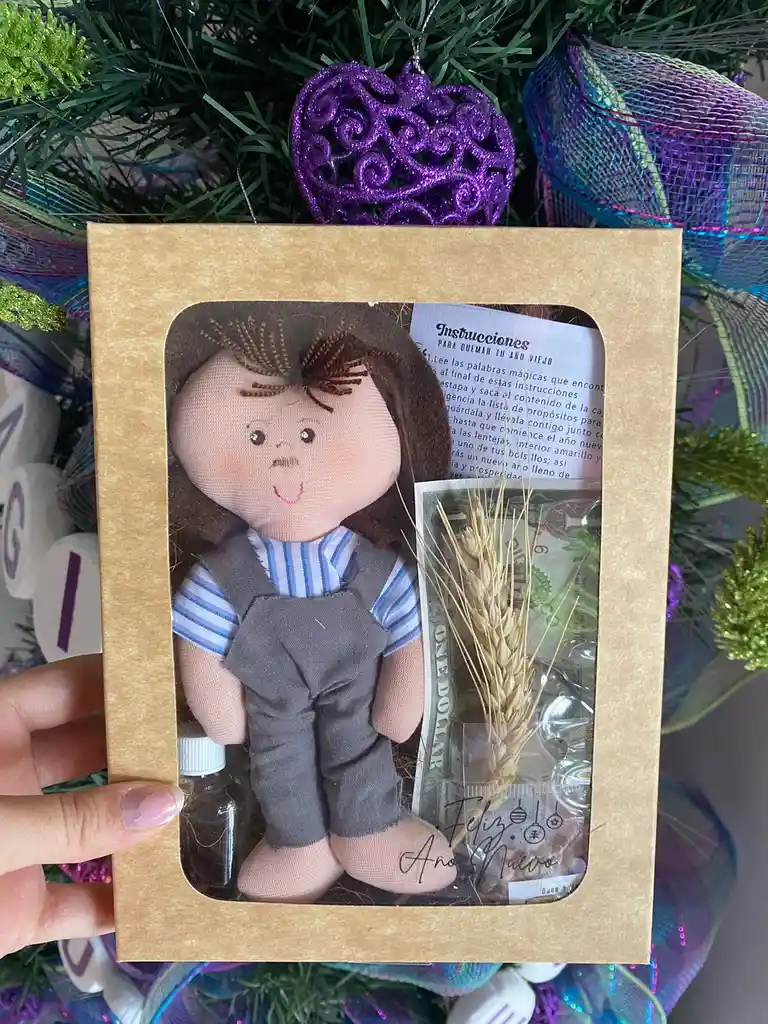 Muñeco de año viejo lentejas alcohol espiga promesa o deseos oración