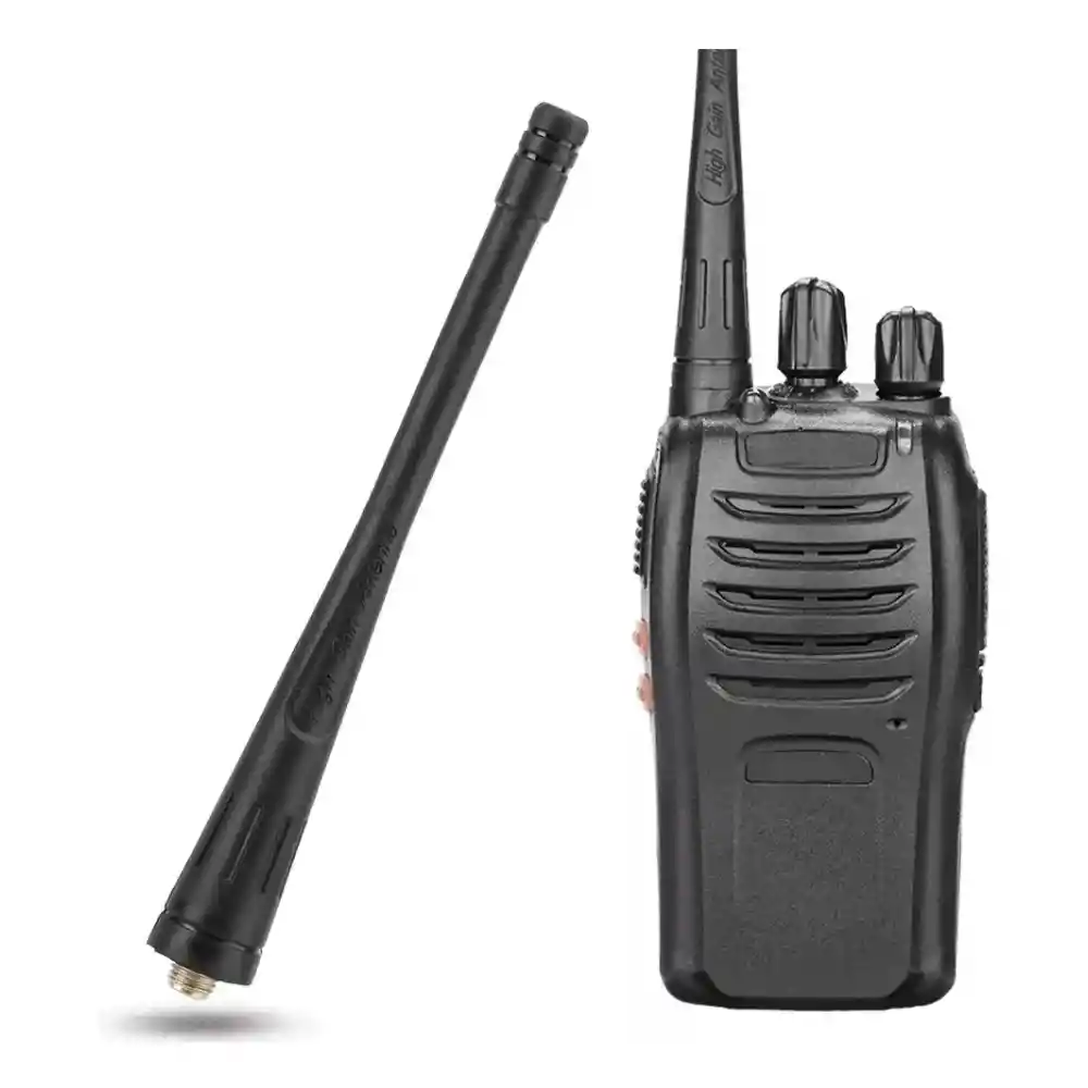 Estas antenas son perfectas para radio de la marca Baofeng. En muchas ocasiones las antenas son los más propensos a dañarse ya que son un poco largos, o se pueden caer y se quiebran. Esta antena será la mejor decisión ya que es pequeña y muy práctica. • Antena hembra • Conector SMA • Rango de conversación: 1.5-3km • Dimensiones: 11X1 cm • Color: Negro • Rango de frecuencia: 400-480MHz • Especialmente para: Baofeng Pofung BF-888S / BF-777S / BF-666S