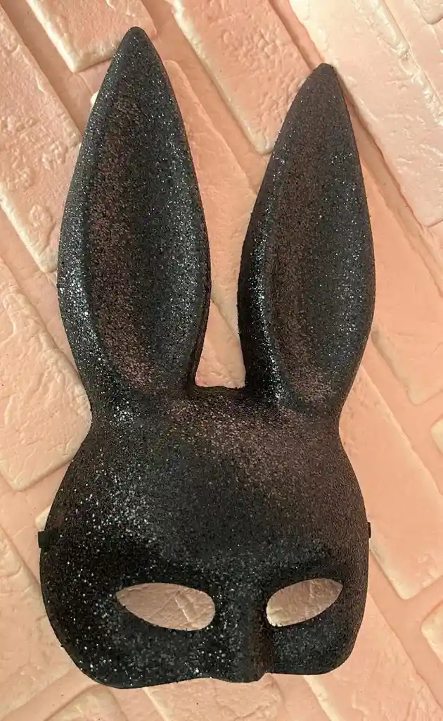 ANTIFAZ CONEJA PLAY BOY OREJAS LARGAS NEGRA ESCARCHADA COD.2229