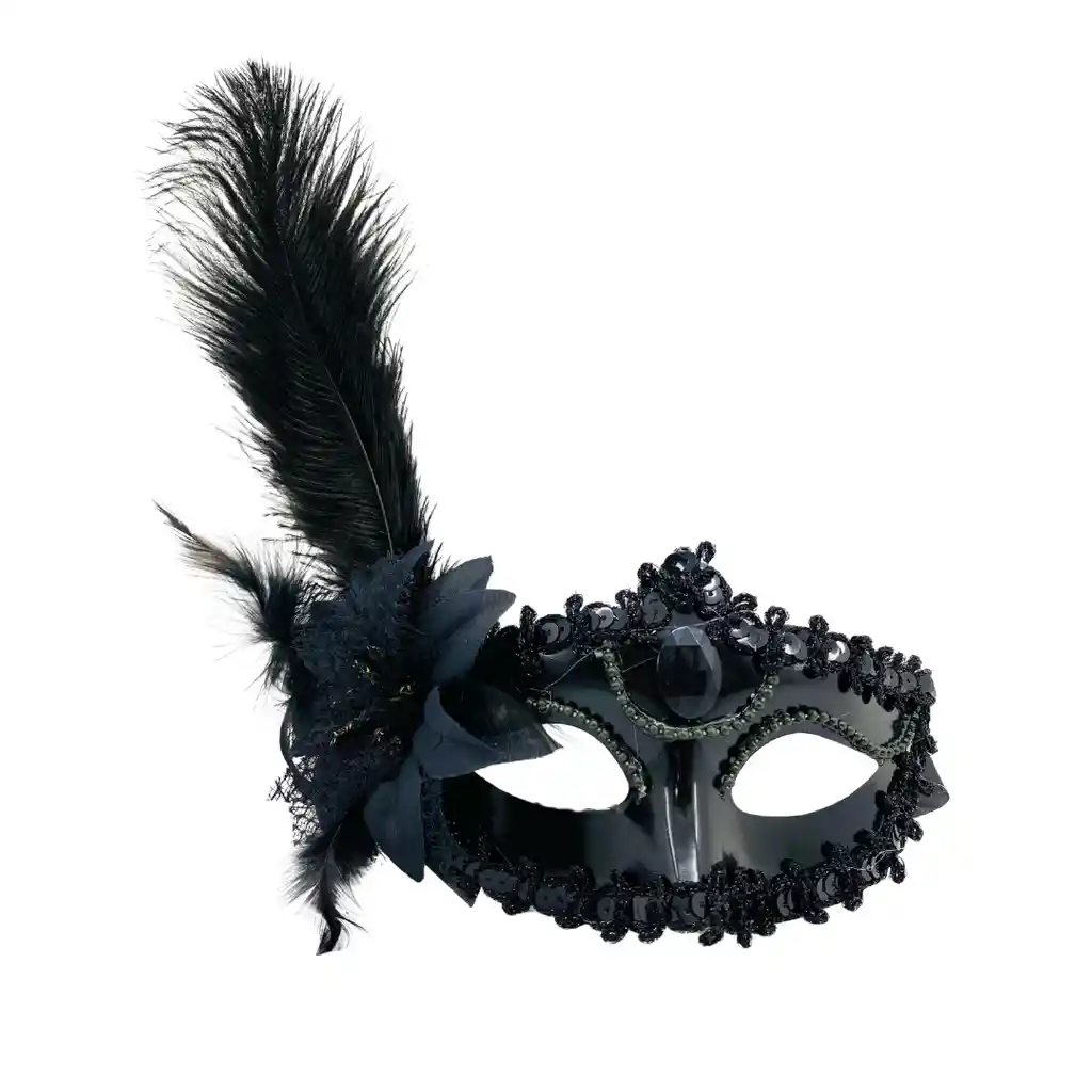 Añade un toque de misterio y elegancia a tus looks con este antifaz decorado con una pluma larga lateral y una piedra plateada en el centro. Ideal para fiestas temáticas, Halloween, carnavales o eventos de disfraces.
