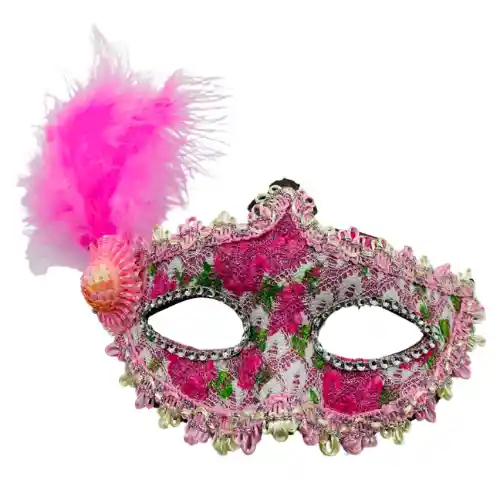 Antifaz Veneciano Con Pluma Lateral Fucsia