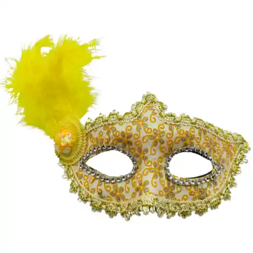 Inspírate en el glamour del carnaval de Venecia con este antifaz elegante y colorido. Decorado con una pluma larga en el lateral, es el complemento ideal para darle un toque de misterio y sofisticación a tu look.