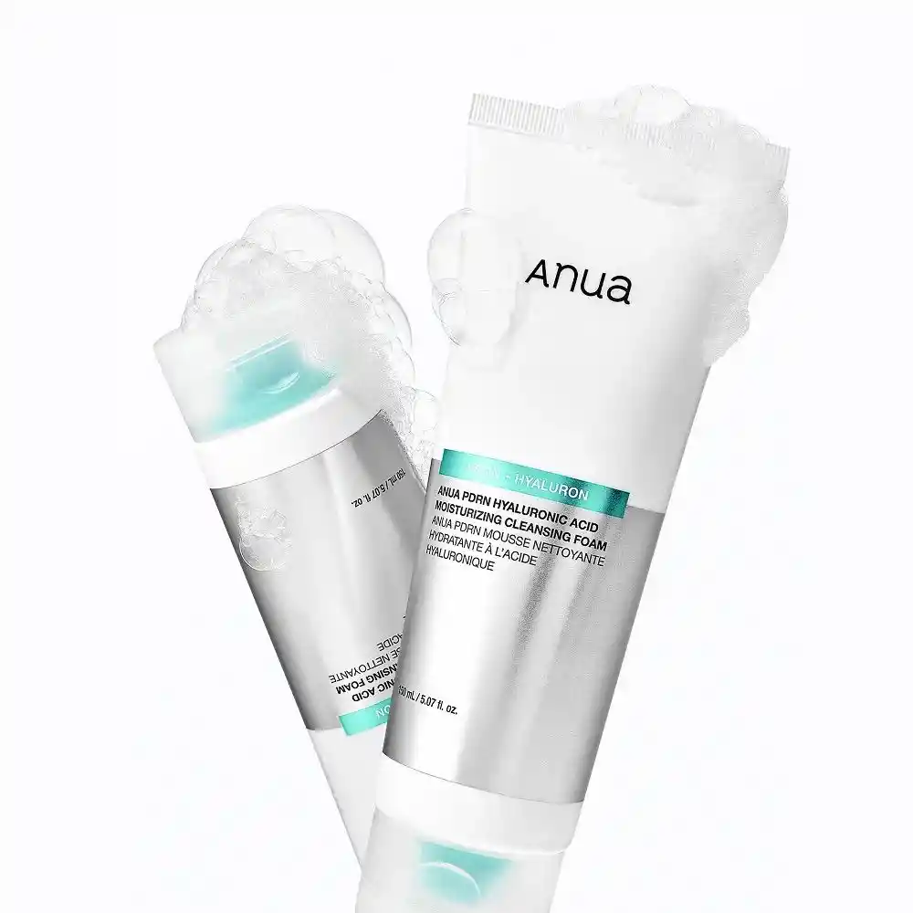 La espuma limpiadora hidratante con ácido hialurónico y PDRN de Anua es un limpiador hidratante y ligeramente ácido (pH 6) diseñado para eliminar las impurezas y el maquillaje sin resecar la piel, dejándola suave y fresca. Con PDRN (ADN de salmón) y ácido hialurónico, refuerza la barrera hidratante y mejora la hidratación, por lo que es ideal para pieles secas y sensibles. ✨Características y beneficios principales: Fórmula hidratante: contiene PDRN (ADN de salmón) para la regeneración de la piel y 11 tipos de ácido hialurónico para retener la humedad. Limpieza profunda: crea una espuma rica y cremosa para eliminar el sebo y las impurezas de los poros. Refuerzo de la barrera cutánea: Enriquecido con colágeno para mejorar la elasticidad y pantenol para proteger la barrera hidratante. Suave con la piel sensible: Fórmula no irritante con un pH de 6 que deja la piel cómoda y sin tirantez. Función «pack-to-foam»: Se puede utilizar como mascarilla de limpieza profunda rápida aplicándola sobre la piel seca durante un minuto antes de hacer espuma, o como limpiador diario.