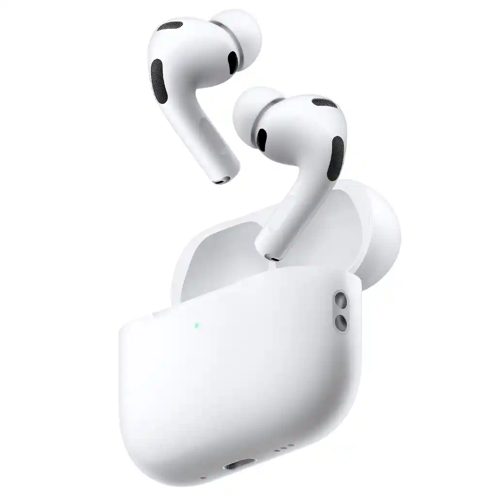 La mejor Cancelación Activa de Ruido del mundo dentro del oído. Ahora con detección de la frecuencia cardiaca, Traducción en Vivo, mayor duración de la batería y avances en salud auditiva. Rediseñados para un ajuste más seguro. - Características LA MEJOR CANCELACIÓN ACTIVA DE RUIDO DEL MUNDO DENTRO DEL OÍDO: Reduce hasta 2 veces más ruidos no deseados que los AirPods Pro 2 y déjate envolver por el aquí y el ahora. RENDIMIENTO DE AUDIO REVOLUCIONARIO: Disfruta de un sonido tridimensional fuera de serie con los AirPods Pro 3. Gracias a la nueva arquitectura acústica, los bajos suenan más profundos y las voces más claras para que no te pierdas ni una sola nota. DETECCIÓN DE LA FRECUENCIA CARDIACA: La detección de la frecuencia cardiaca integrada te permite medir tu ritmo cardiaco y las calorías que quemas en hasta 50 tipos de entrenamiento diferentes. Con el iPhone, puedes acceder al círculo Moverse y a tu conteo de pasos. TRADUCCIÓN EN VIVO: Comunícate en otros idiomas usando Traducción en Vivo posible gracias a Apple Intelligence. MAYOR DURACIÓN DE LA BATERÍA: Disfruta hasta 8 horas de audio con Cancelación Activa de Ruido con una sola carga y hasta 24 horas de tiempo total de escucha al combinarlo con el estuche de carga. Uso con una carga (auriculares): Hasta 8 horas de audio con cancelación de ruido. Uso sin cancelación de ruido: La duración puede extenderse a aproximadamente 10 horas. Total con estuche: Aproximadamente 24 horas de tiempo total de reproducción. Cargas extras: El estuche proporciona al menos dos cargas adicionales completas. Estos tiempos pueden variar ligeramente con funciones activadas como el audio espacial (aprox. 7,5 horas). Cuentan con una clasificación de resistencia al polvo, sudor y agua IP57 bajo la norma IEC 60529, lo que significa que están protegidos contra el polvo y la inmersión en agua hasta 1 metro de profundidad durante 30 minutos. MEJOR AJUSTE DENTRO DE LA OREJA: Las nuevas almohadillas, que ahora vienen en cinco tamaños, ofrecen un ajuste más seguro y personalizado y un rendimiento de audio sin precedentes. SALUD AUDITIVA: Reducción de Ruidos Altos disminuye automáticamente los ruidos fuertes a tu alrededor, como sirenas o maquinaria de construcción, para que disfrutes una mejor experiencia auditiva. EXPERIENCIA DE AUDIO A TU MEDIDA: La Ecualización Adaptativa de última generación permite personalizar el uso de los dispositivos de acuerdo con la geometría única de tus orejas. Y los micrófonos orientados hacia adentro se usan para analizar lo que estás escuchando y hacer ajustes en tiempo real. UNA EXPERIENCIA MÁGICA: Con la detección automática de dispositivo, pasa automáticamente de un dispositivo Apple a otro. Y Compartir Audio te permite disfrutar al instante una canción o una película conectando dos pares de AirPods a tu iPhone, iPad o Apple TV. - En la caja AirPods Pro 3 Estuche de carga MagSafe (USB‐C) con altavoz y enganche para correa Almohadillas de silicona (cinco tamanos: XXS, XS, S, M y L) Documentacion