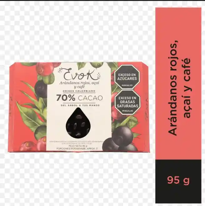 Arándano rojo recubierto de chocolate al 70 cacao con agregados de acaí y café por 95 gramos