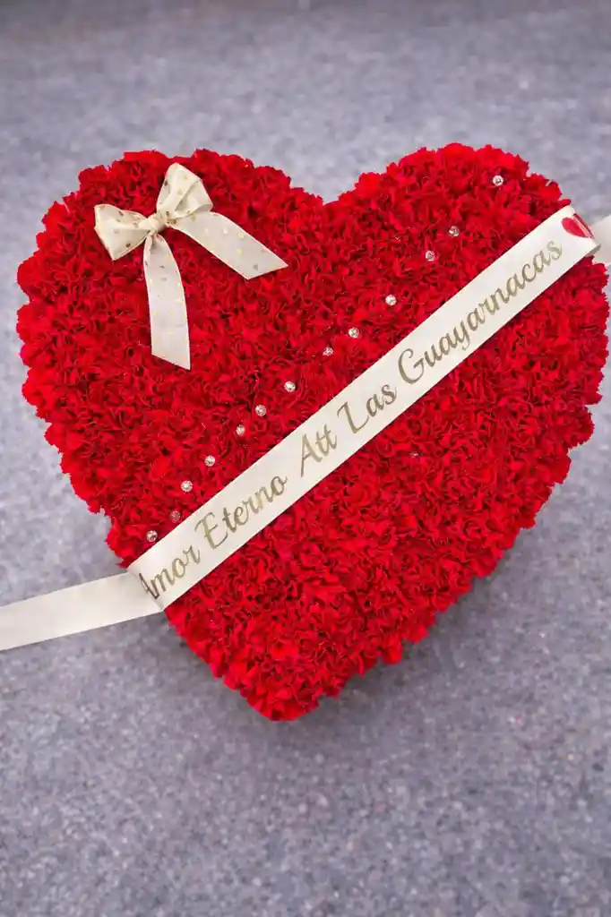 Caja en forma de corazon con claveles rojos para que exprese la pasión que llevas dentro de ti